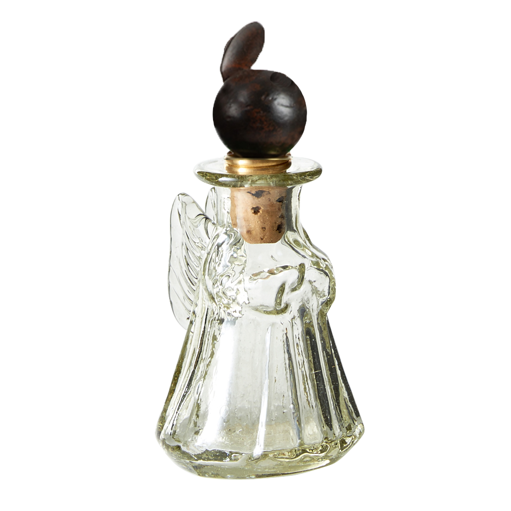 Mouth Blown Vibrant Clear Small Angel Decanter w/ Iron Angel Halo d' Head Topper.