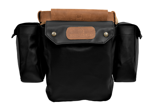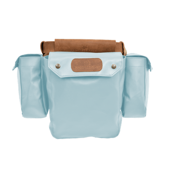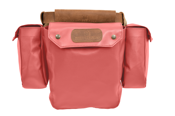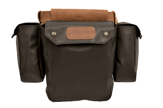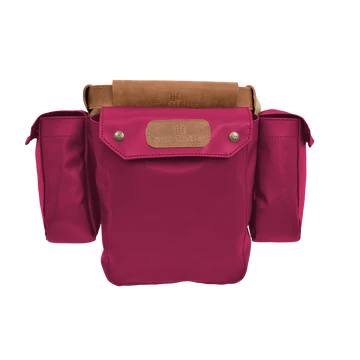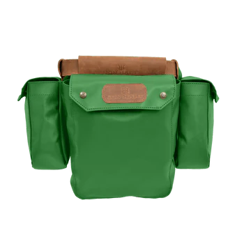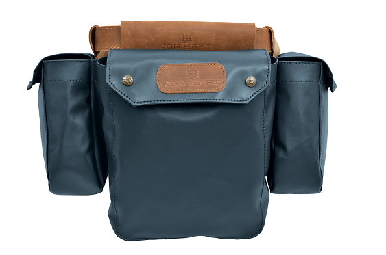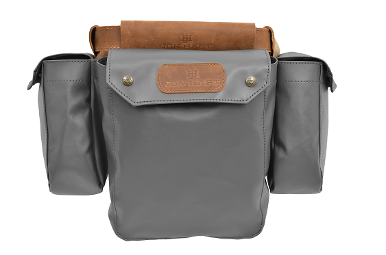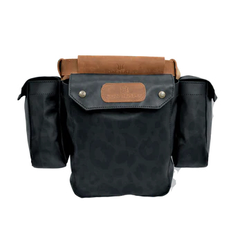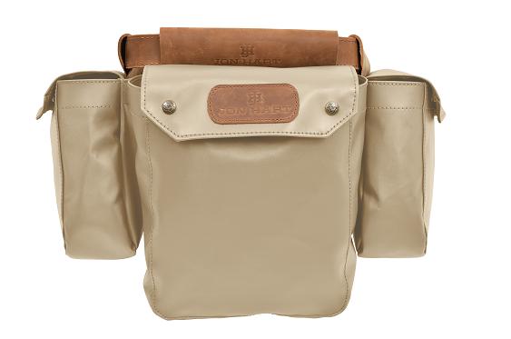 Coated Canvas or Cotton Canvas with Oiled Leather trim. Three bags with snap closures in antique brass hardware. Oiled Leather belt made to fit even waist sizes from 28"-46". We recommend adding 2" to your normal belt size when ordering (4" larger than your waist size to allow it to fit over both your pants and pant belt).