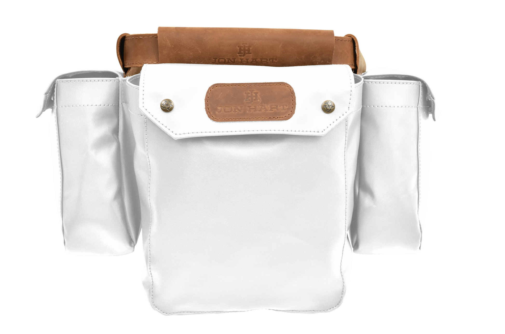 Our new and improved bird bag includes 3 bags that can be removed from the belt. Included are two side bags and a larger bag that can be personalized. Wipe clean with a damp cloth. NOT machine washable.