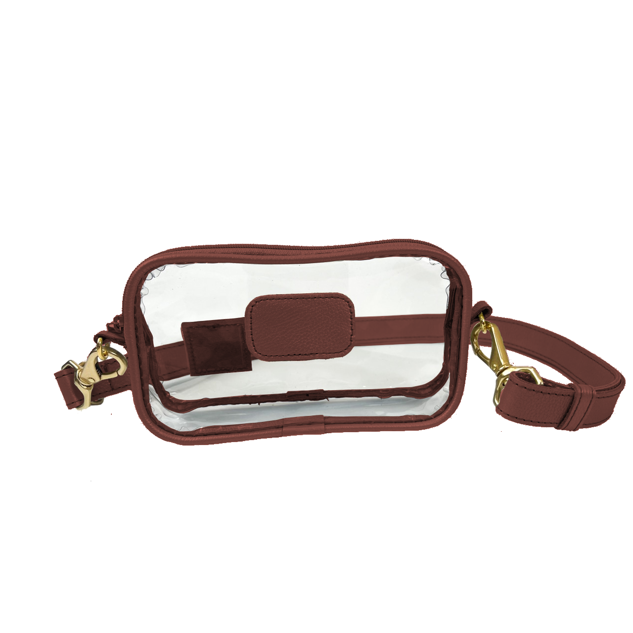 This Clear Crosslet is a must have for games, concerts, pool days, beach trips & all other events! With over 15 colored leather trim options to choose from, you can’t go wrong!