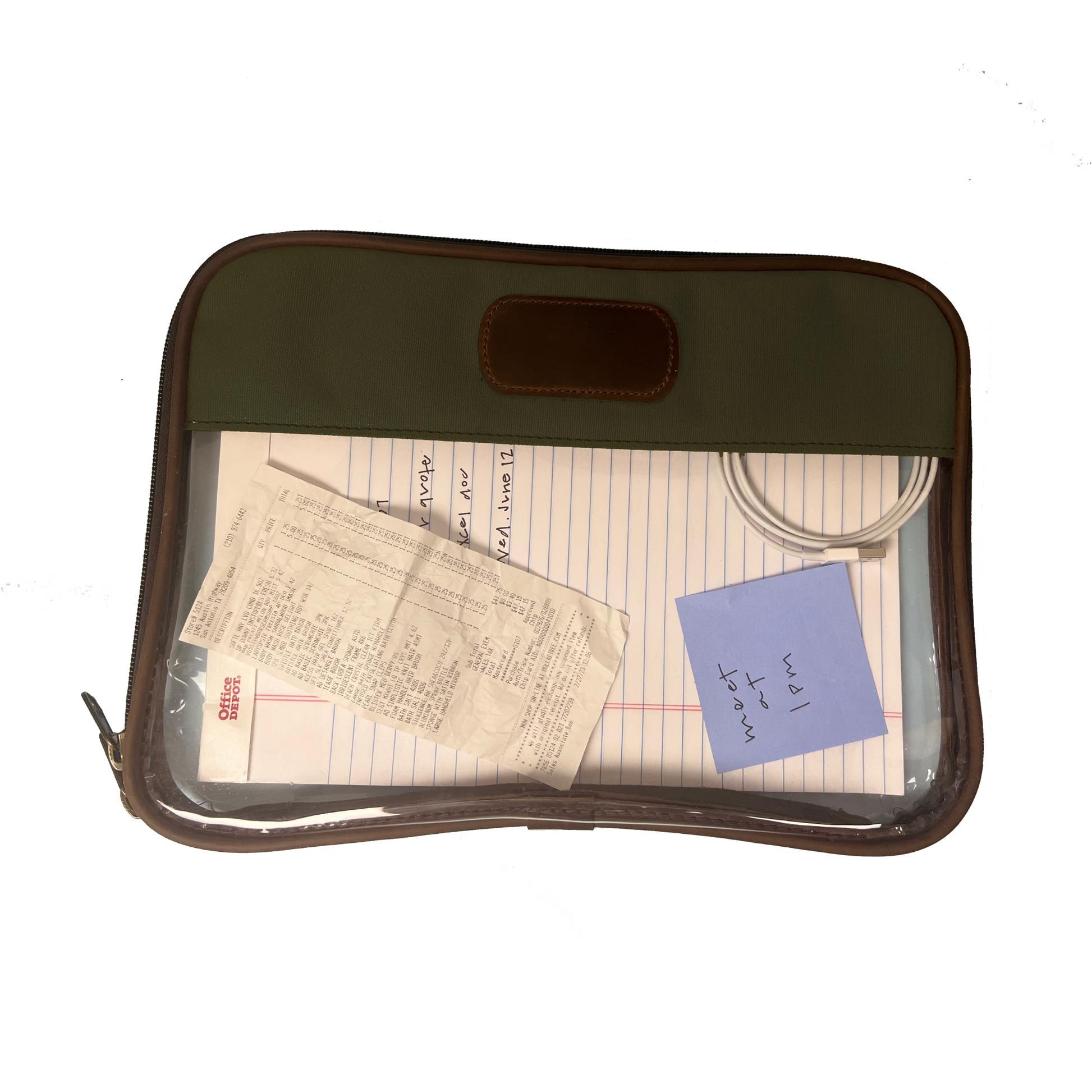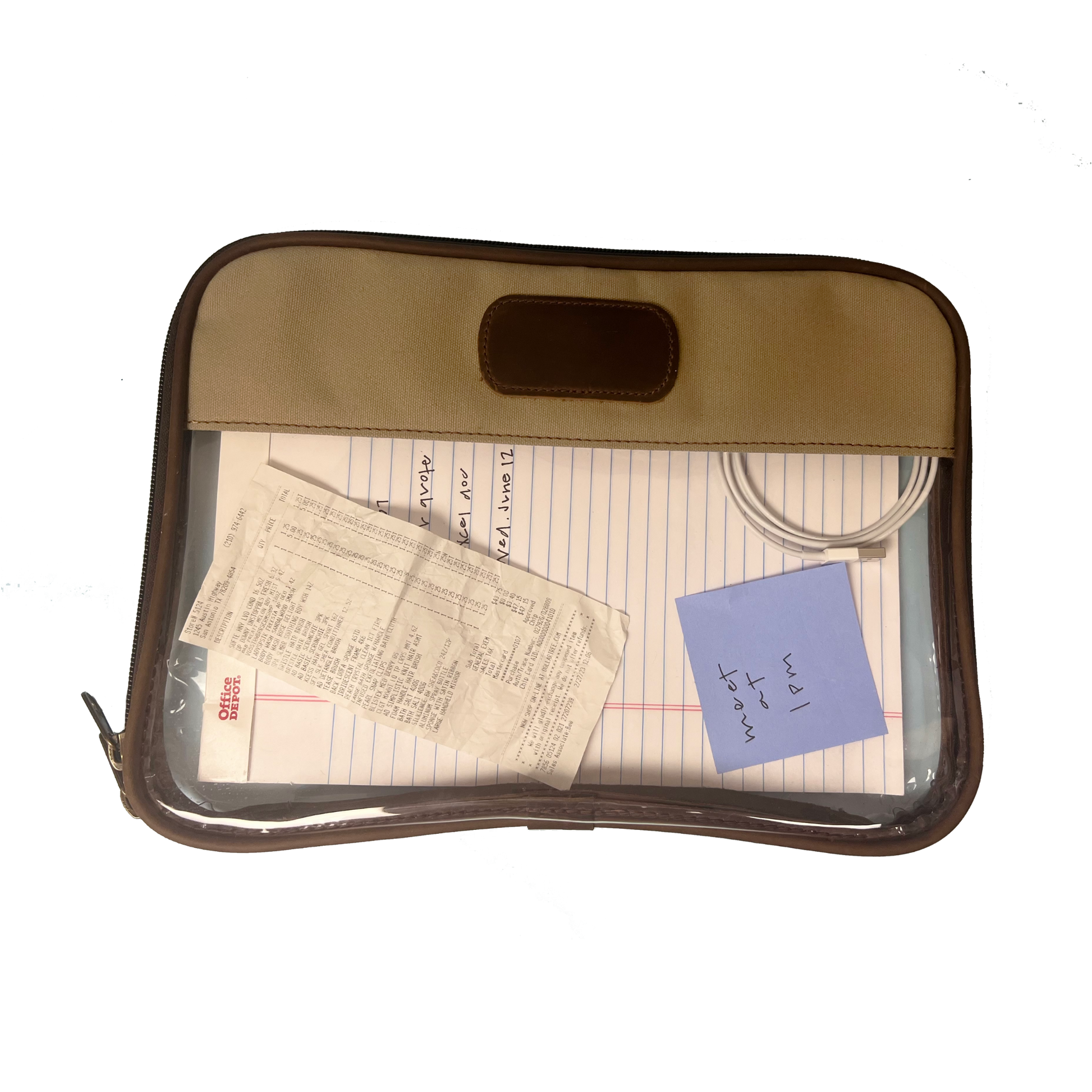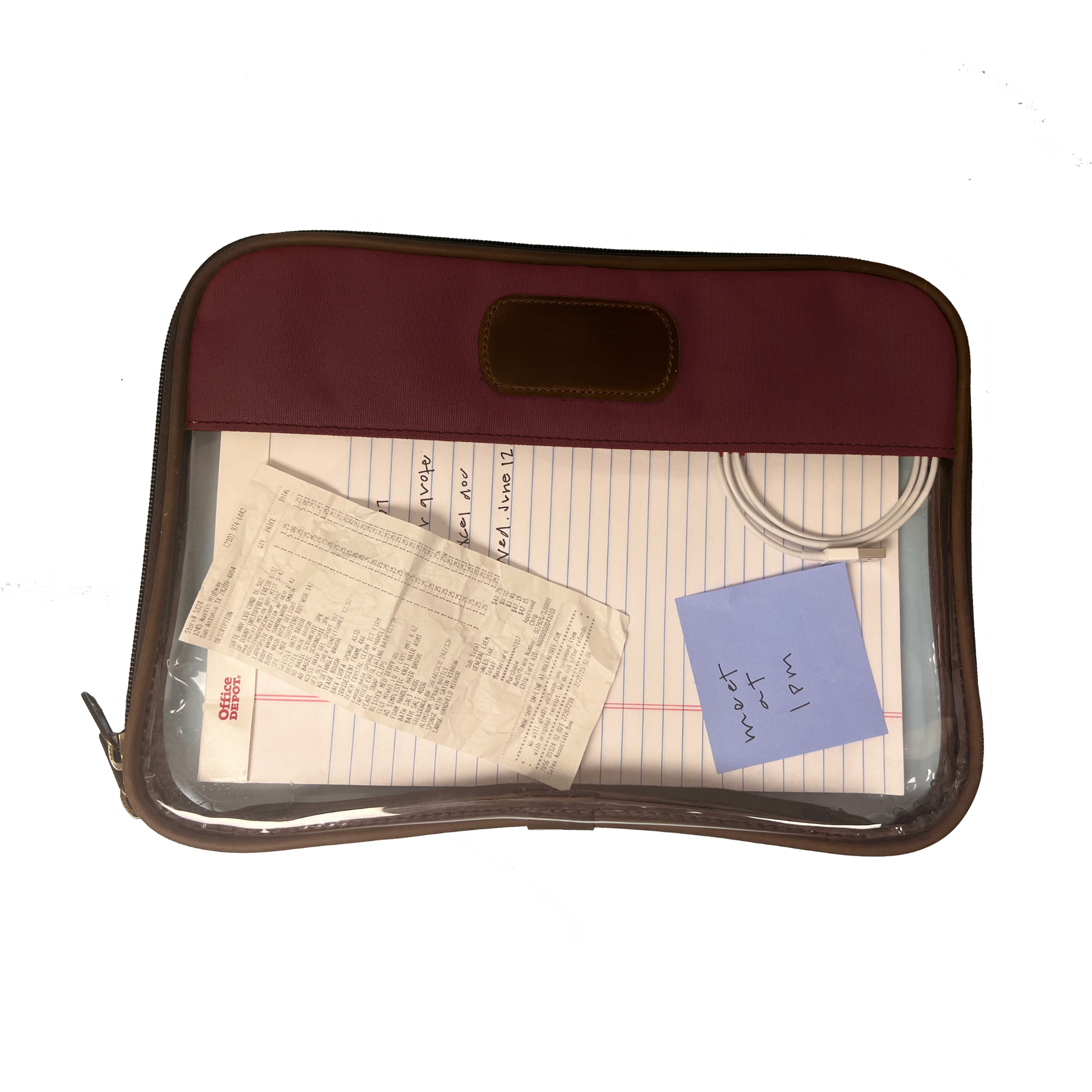 Keep essential items securely organized while on the go with our Clear Folio. Constructed to accommodate full sized papers, notebooks, and other critical documents, this practical folio is the perfect companion for business meetings and vacations alike.