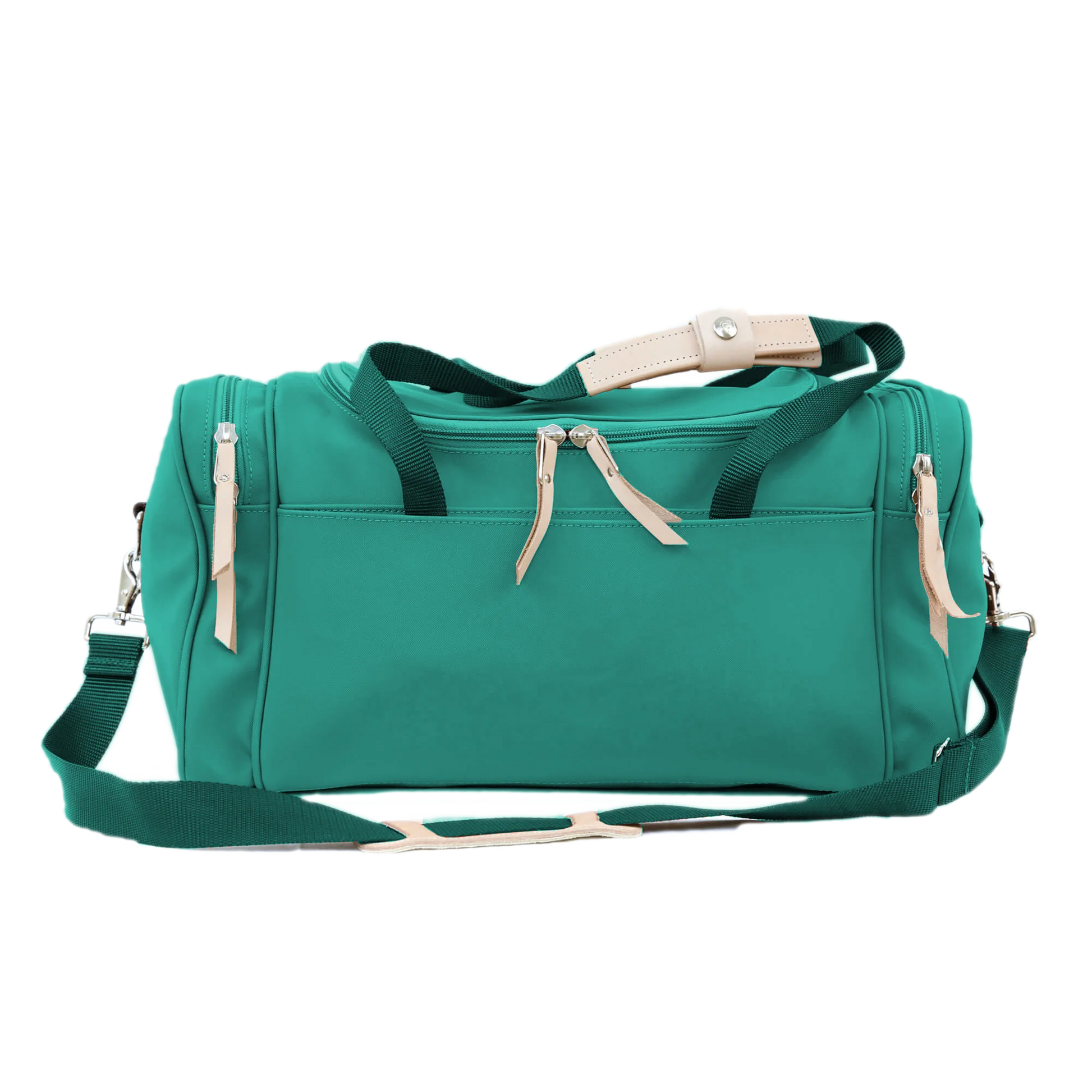 - Sleeve on the back designed to fit securely over the extended handle of a rolling suitcase
