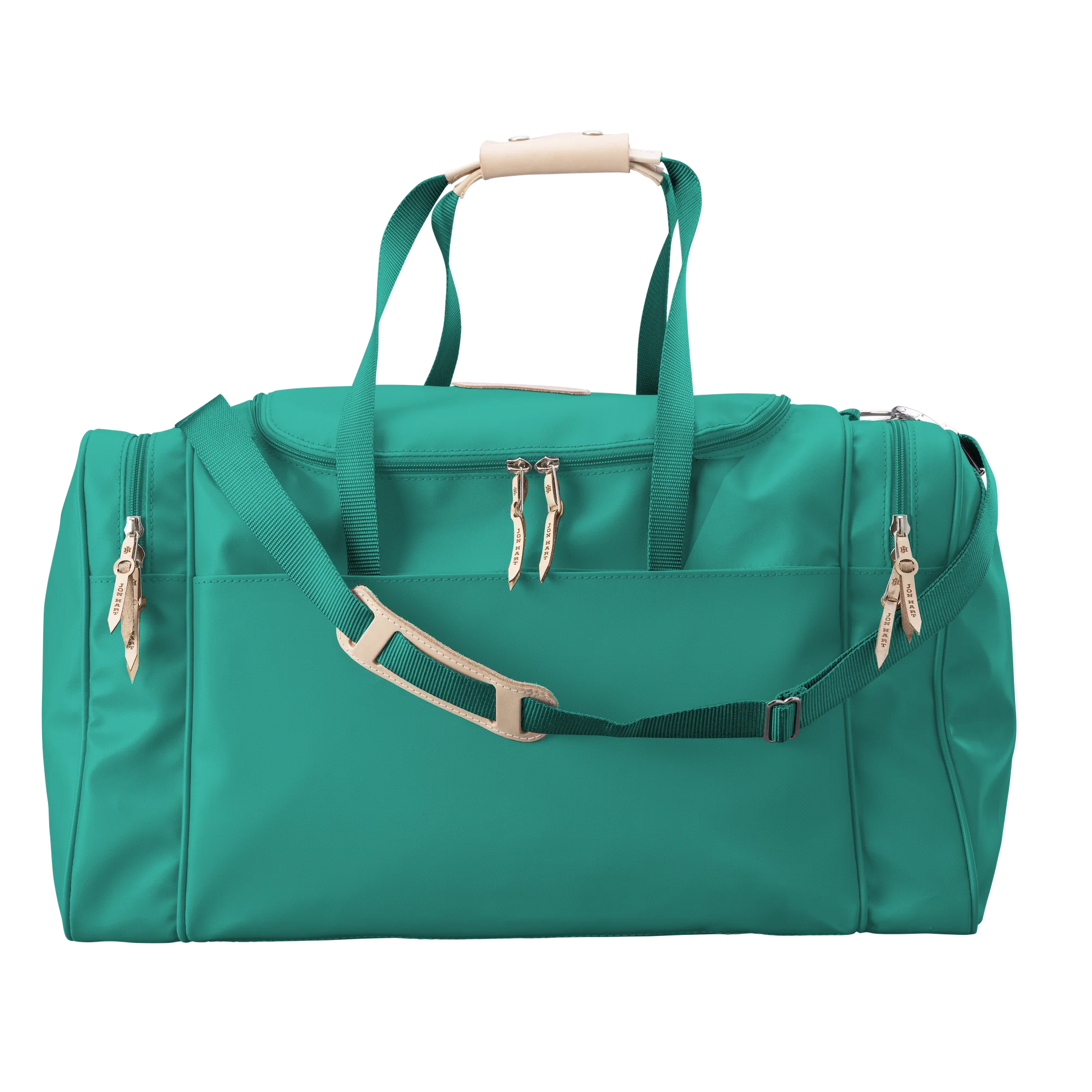 - Sleeve on the back designed to fit securely over the extended handle of a rolling suitcase