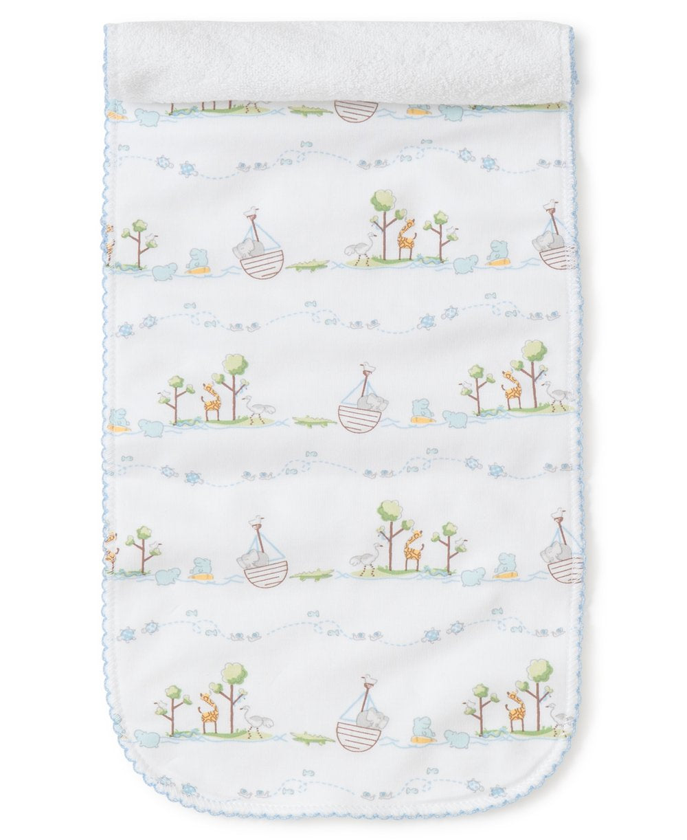 - Noah's adorable animal friends pattern this burp cloth for your baby boy. Made from soft Pima cotton to wipe up life's little messes.